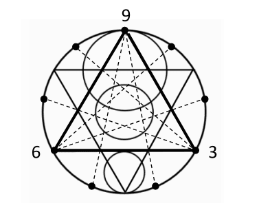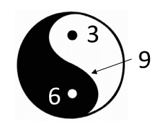 The numbers 3 and 6 can be seen as representing each side of the Yin/Yang with 9 as the “S†curve oscillating between them:[2]
